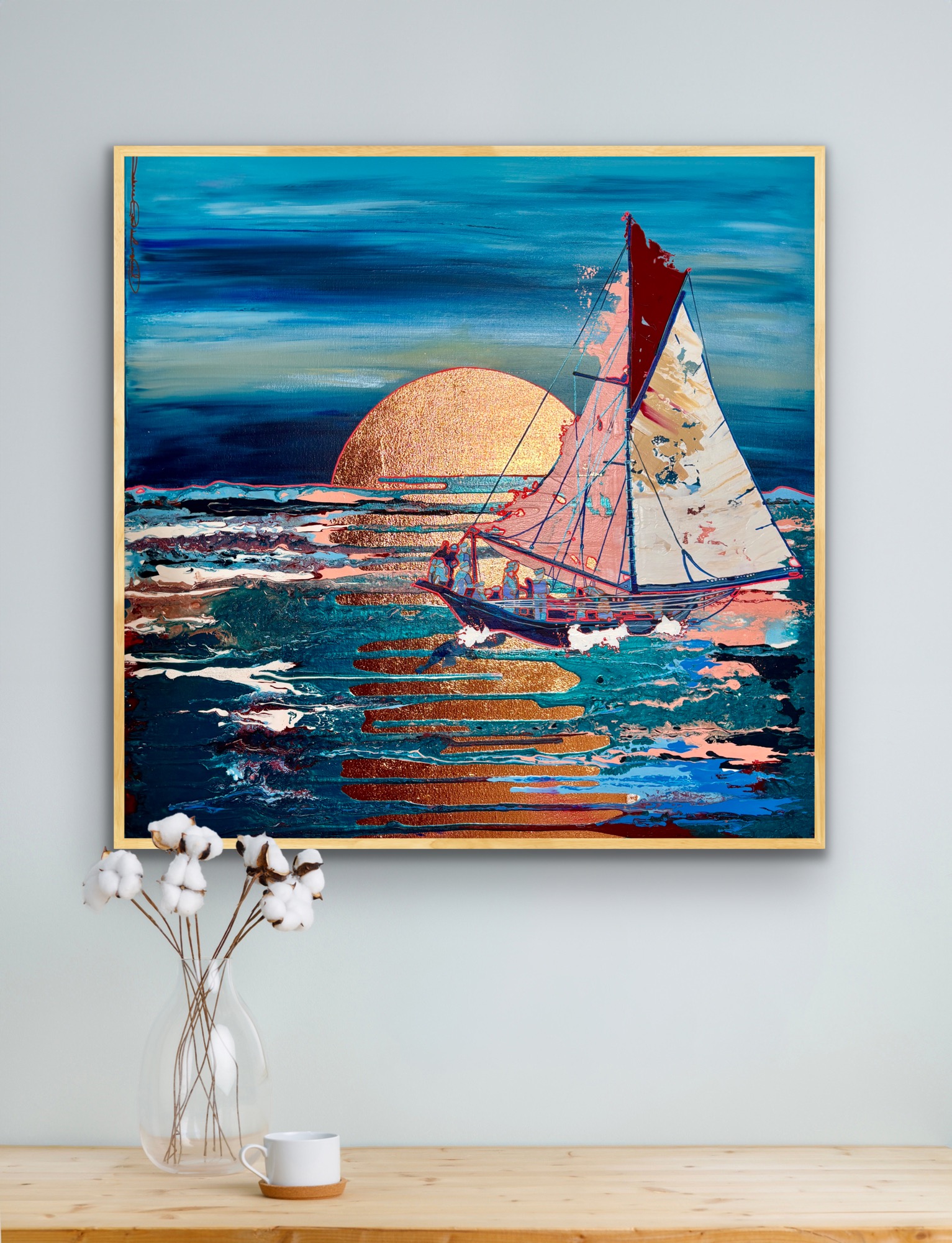 Working directly with you, Rebecca captures every detail of your vessel — from the lines of the hull to the play of light on the water. The result is a living piece of art, built to the exact dimensions of your space and finished to the same standard as her exhibition work.
