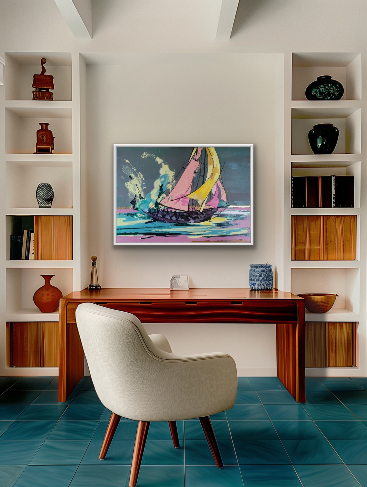 Working directly with you, Rebecca captures every detail of your vessel — from the lines of the hull to the play of light on the water. The result is a living piece of art, built to the exact dimensions of your space and finished to the same standard as her exhibition work.