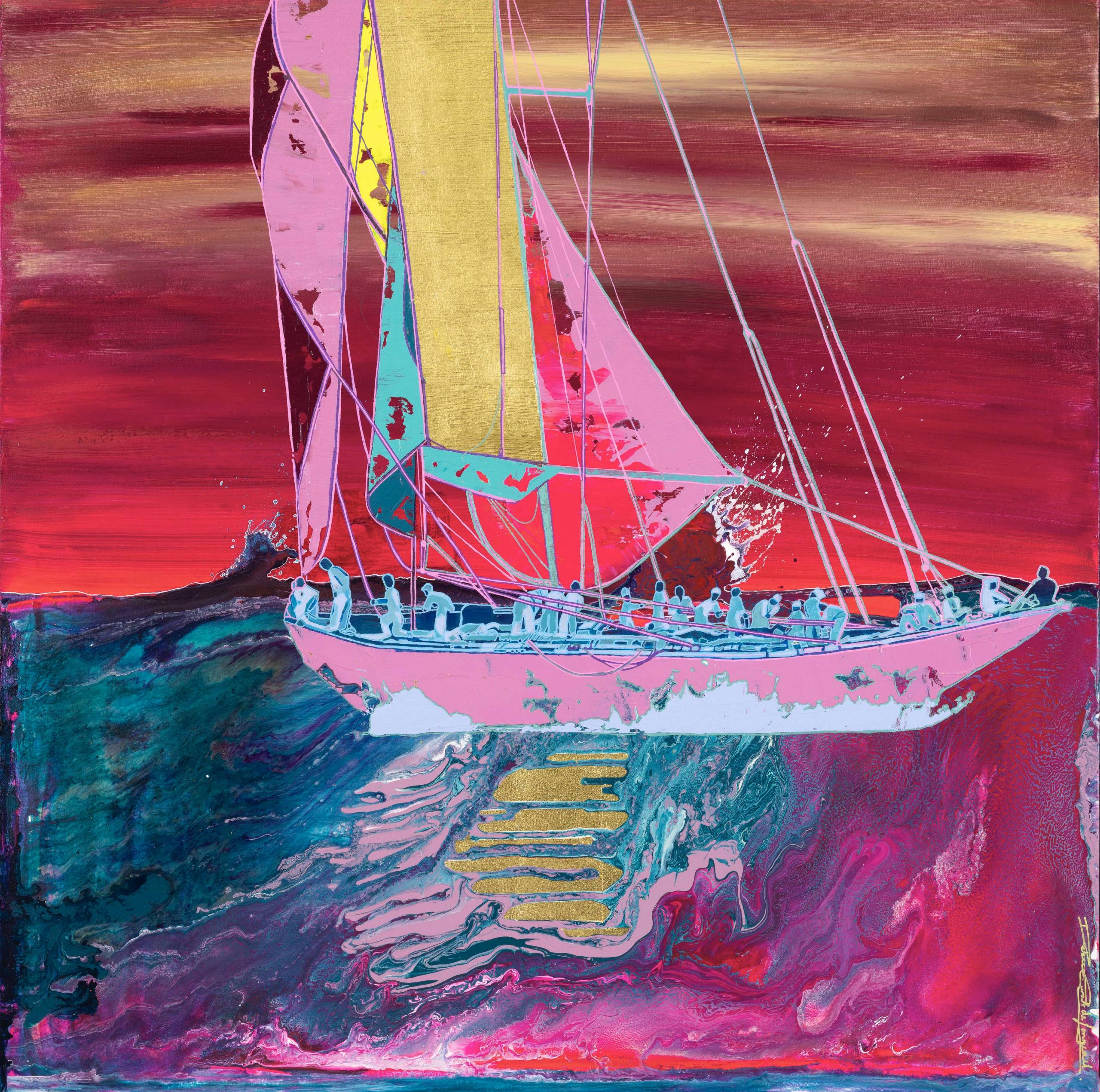 Every vessel has a story worth painting. If you would like a one-of-a-kind portrait of your own yacht, Rebecca takes on a small number of bespoke commissions each year. Each painting is made entirely to order, using high-quality materials including 24ct gold leaf, silver, and mother of pearl.