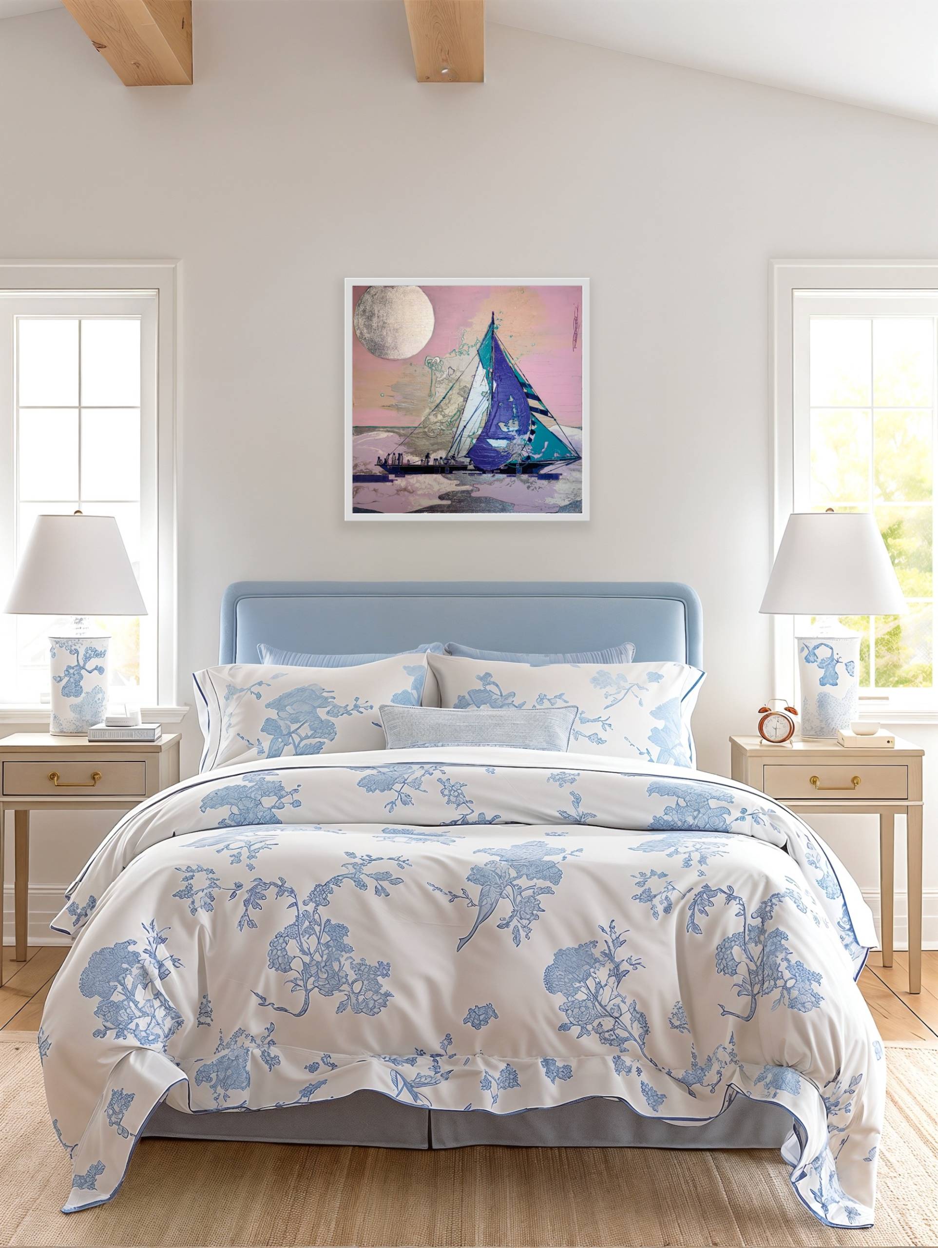 Working directly with you, Rebecca captures every detail of your vessel — from the lines of the hull to the play of light on the water. The result is a living piece of art, built to the exact dimensions of your space and finished to the same standard as her exhibition work.