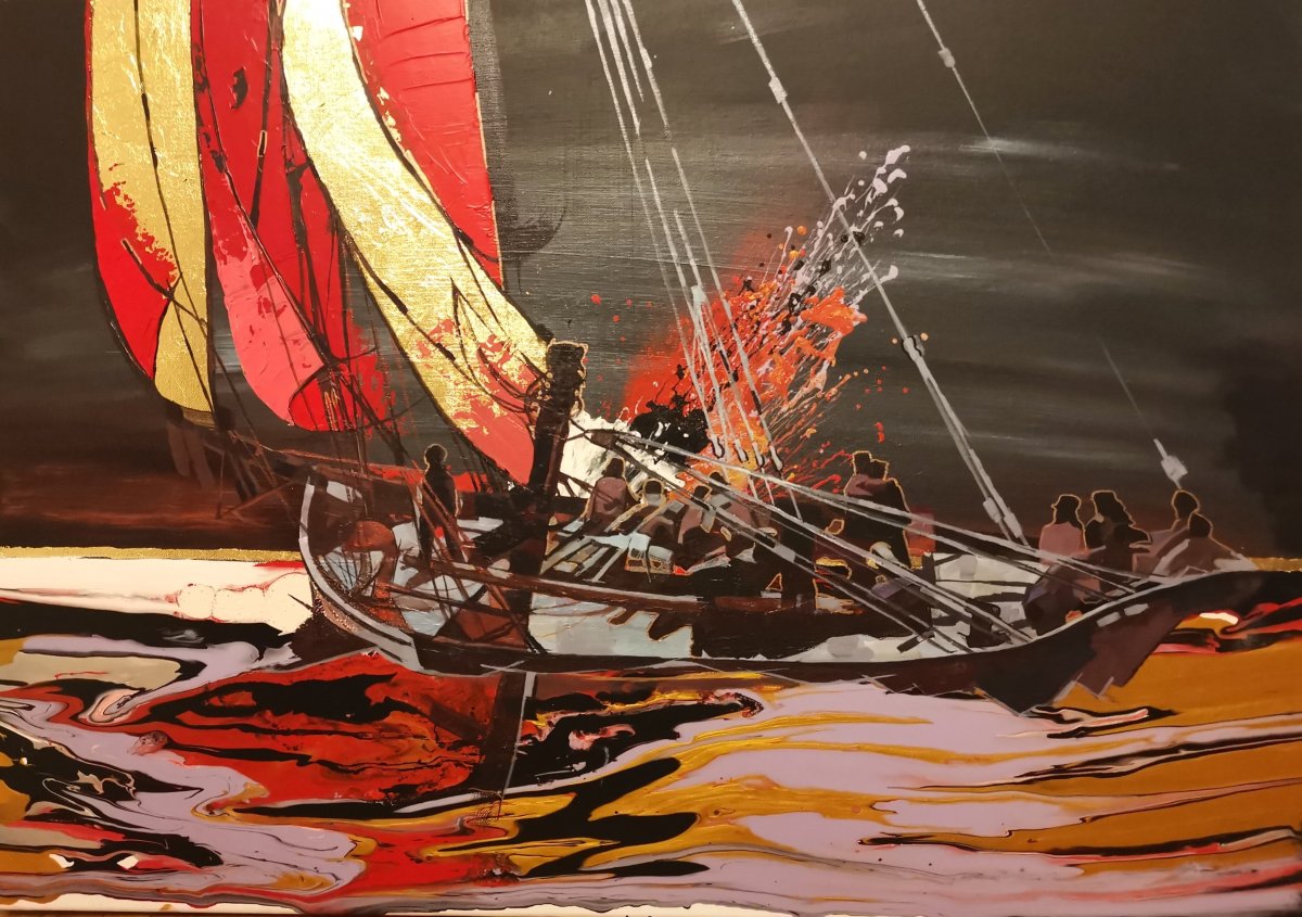 Every vessel has a story worth painting. If you would like a one-of-a-kind portrait of your own yacht, Rebecca takes on a small number of bespoke commissions each year. Each painting is made entirely to order, using high-quality materials including 24ct gold leaf, silver, and mother of pearl.
